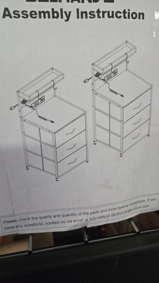 (New Open Box) SZLHANJZ Nightstands Set of 2, End Table with LED Light and Charging Station Type, , Rustic Brown