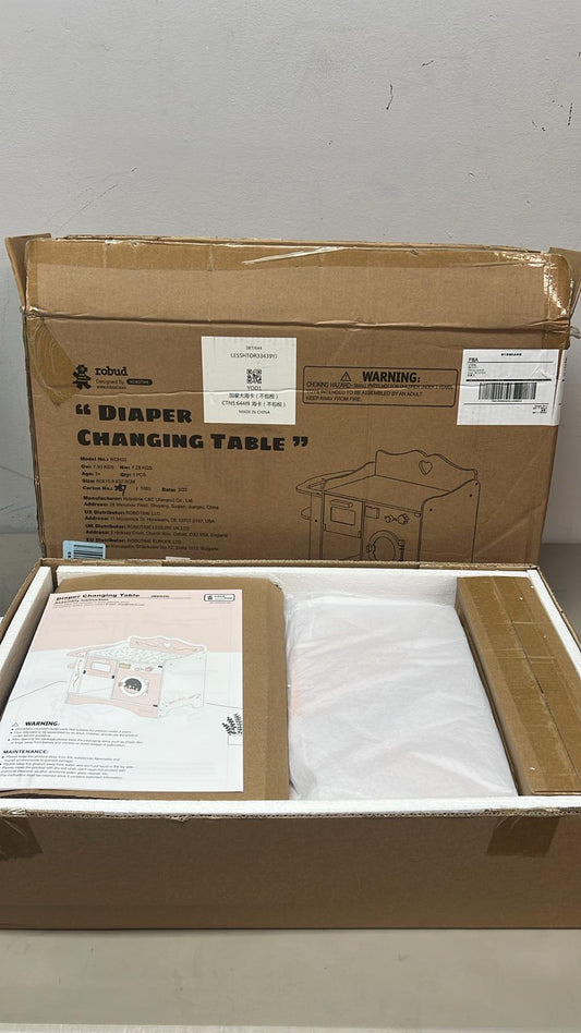 (New Open Box) ROBUD Baby Doll Crib, Pink Baby Doll Beds, Wooden Doll Changing Station