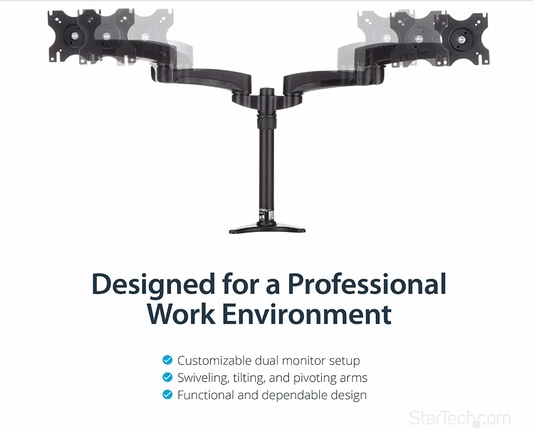 (New Open Box) StarTech Desk Mount Dual Monitor Arm – Articulating - Supports Monitors 12'' to 24'' – Adjustable VESA Monitor Arm - Grommet or Desk Mount – Black (ARMDUAL)