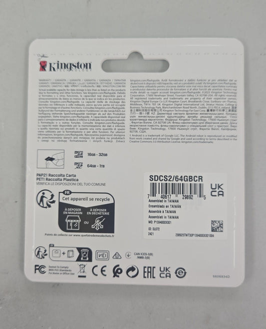 (Brand New) Kingston 64GB micSDXC Canvas Select PlusRegular price $15.00 CADRegular priceUnit price per-