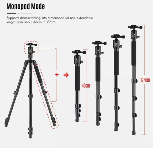 (Brand New) Kingjoy G555 4-Section Travel Tripod Detachable Monopod with Panoramic BallRegular price $70.00 CADRegular priceUnit price per-