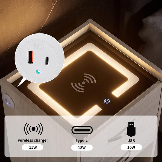 (Brand New) OLD CAPTAIN Nightstand with Wireless Charging Station,Modern Side Table with Drawers and Open Storage Shelf for Bedrooms