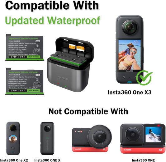 (Excellent) 2 Packs 360 X3 Batteries with Charger Hub for Insta 360 ONE X3 Battery 1800mAh