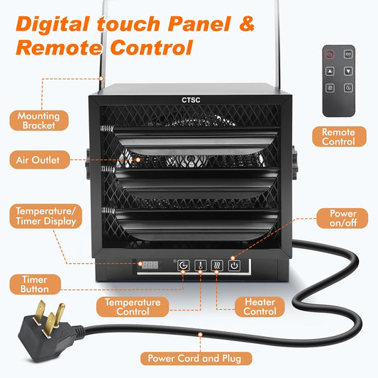 (Excellent) CTSC 4800W Garage Heater, Electric Shop Heater, 240V/30Amps Plug, Fan-Forced Thermostat Control