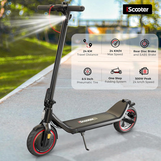 (New Open Box) iScooter i8L Electric Scooter, Up to 29/30 KM/H & 25/30 KM Range by 500W Peak Motor, 8.5" Tires Folding E Scooter with Disc Brake System, Lightweight Commuting Electric Scooter for Adults & Teens