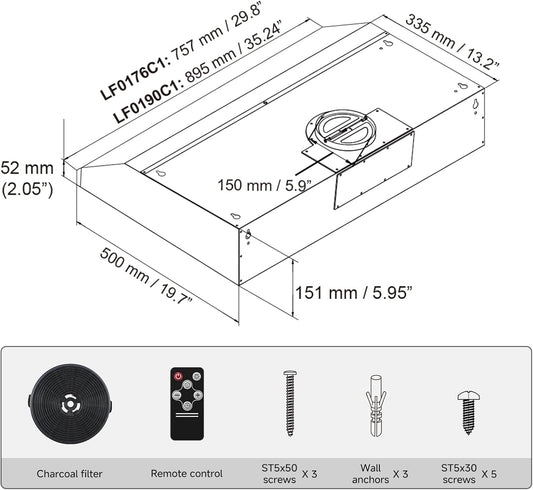 (New Open Box) AMZCHEF (LF0176C1) Under Cabinet Range Hood 30 Inch, 700CFM Stainless Steel Kitchen Stove Vent Hood 3 Speed Exhaust Fan Touch/Remote Control LED lights Time Setting Dishwasher-Safe Baffle Filters