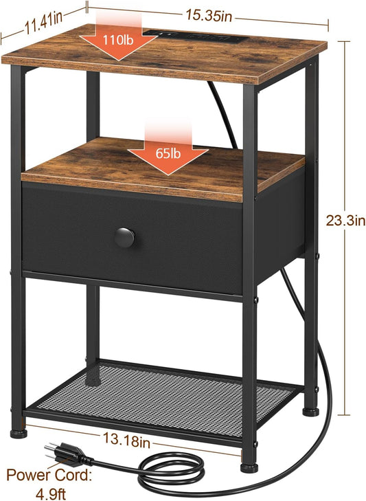 (New Open Box) AMHANCIBLE Narrow Side Table with Charging Station, Skinny End Tables-HETN04BR (DS0054)