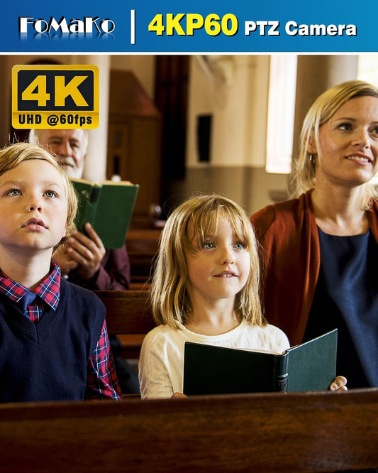 (New Open Box) FoMaKo 60FPS 4K NDI PTZ Camera, 20X Optical Zoom, 4KP60 AI Auto-Tracking, 1/1.8 UHD CMOS 8.42MP USB3.0 3G-SDI HDMI, for Church Worship Education Conference Events (K820N)