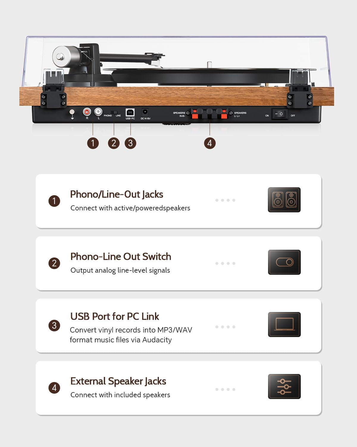 (Brand New) 1 BY ONE Record Player Wireless Turntable HiFi System (Natural Wood)