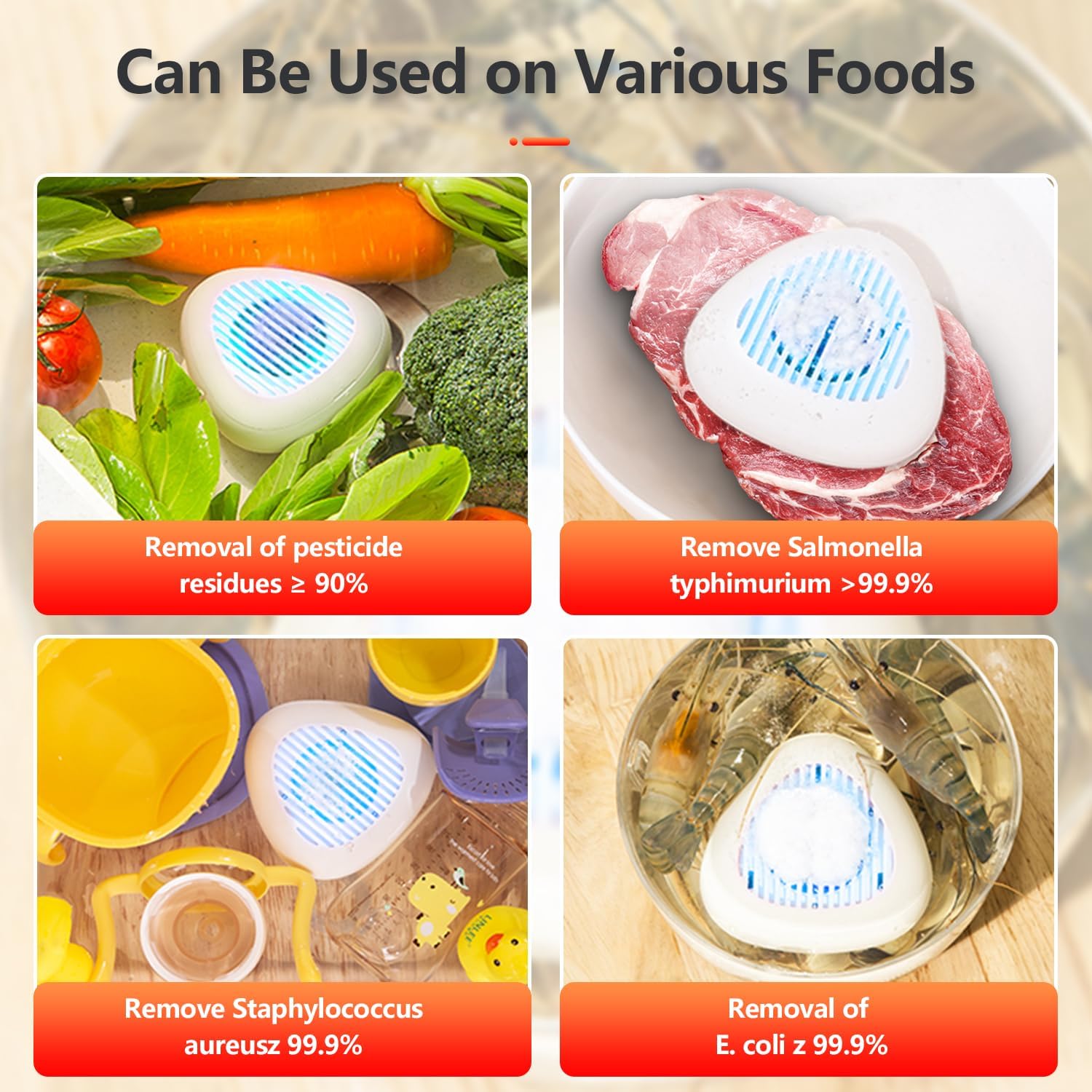 【Wireless and Portable】Built-in 2000mAh capacity rechargeable battery, the fruit and vegetable purifier can be used 15 times when fully charged. No direct contact with strong electricity, safe and stable. There is no noise or interference during use. Small and portable, suitable for travel, picnic, work meal