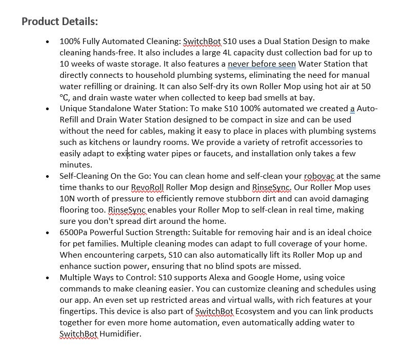 - Multiple Ways to Control: S10 supports Alexa and Google Home, using voice commands to make cleaning easier. You can customize cleaning and schedules using our app. An even set up restricted areas and virtual walls, with rich features at your fingertips. This device is also part of SwitchBot Ecosystem and you can link products together for even more home automation, even automatically adding water to SwitchBot Humidifier.