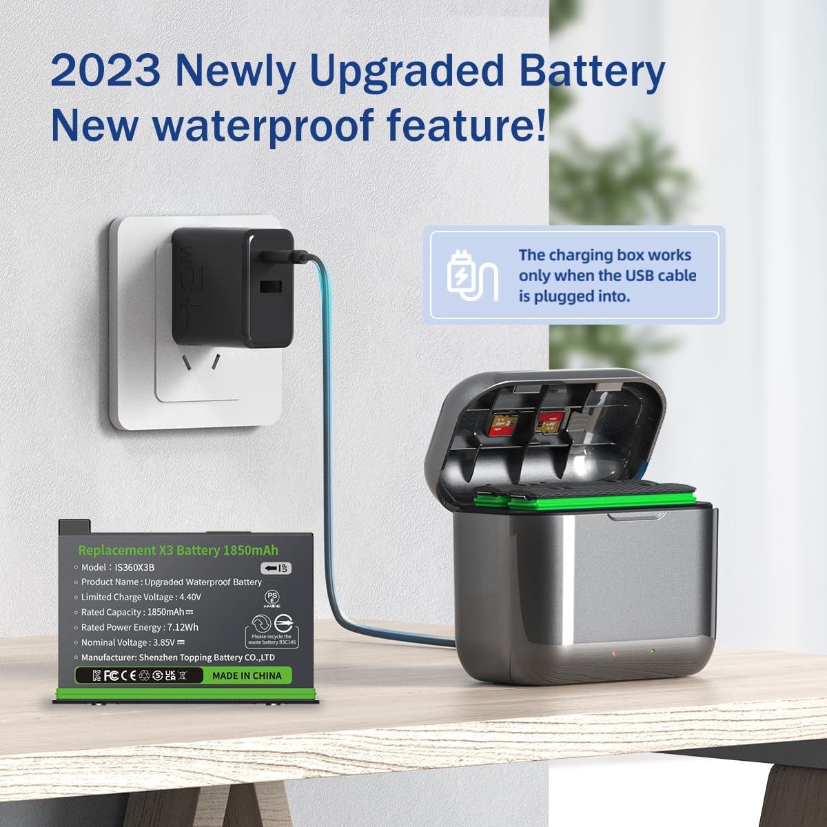 【Waterproof Replacement battery Compatible with Insta 360 x3】Compatible with Insta 360 x3 Li-ion Polymer Battery 1850mAh: Limited Charge Voltage: 4.40V; Rated Power Energy:6.93Wh; Nominal Voltage:3.85V. (Waterproof within 5 meters)