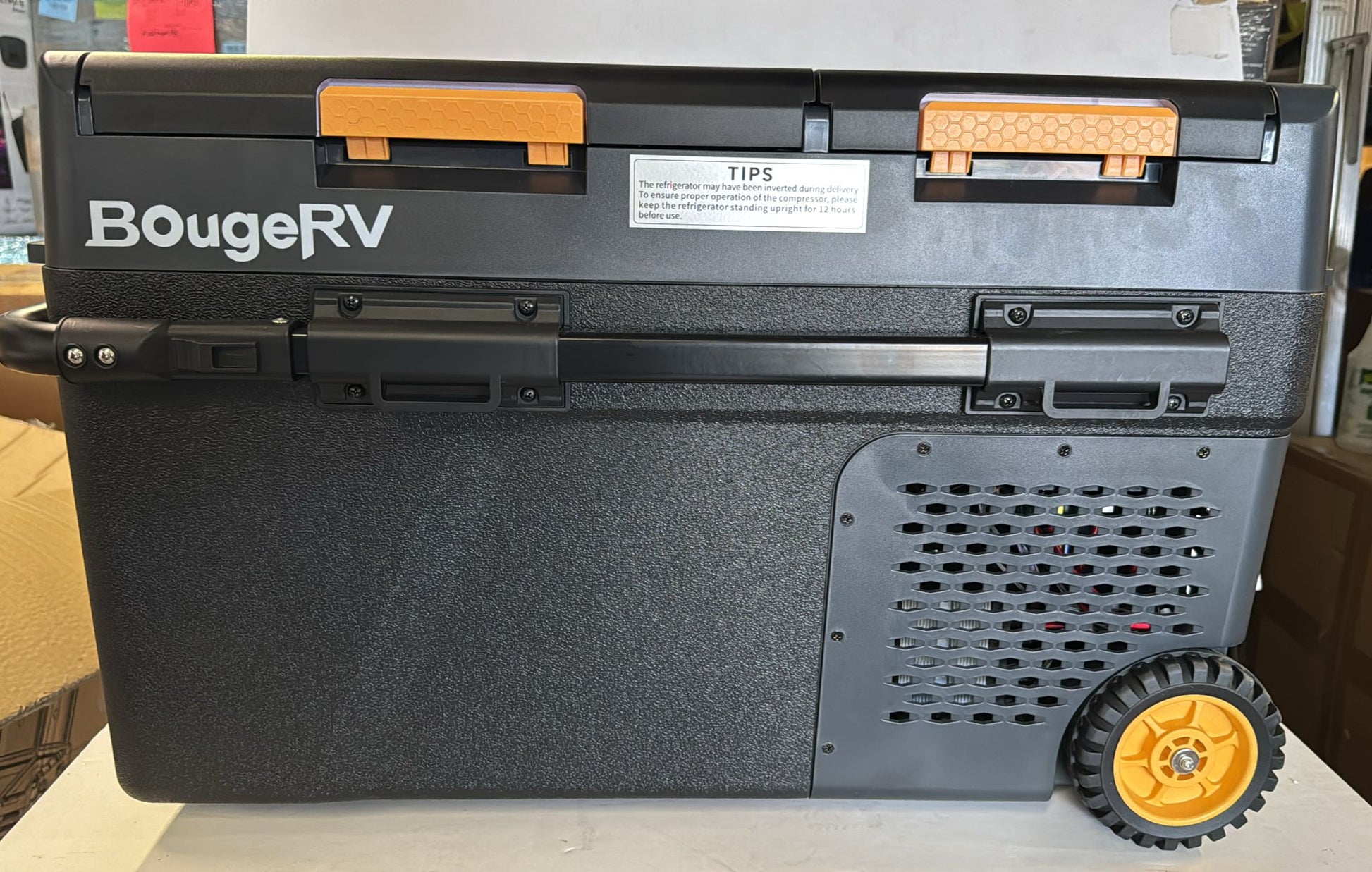 Wheels & Handle for Easy Transport: This portable Dual Zone fridge comes with wheels and a telescopic handle, making it easy to transport from your car trunk to your campsite. Equipped with a solar charging port (60W max, 12V 5A), you can pair it with the BougeRV 173Wh battery and BougeRV 100W solar panel, extending its outdoor usage time