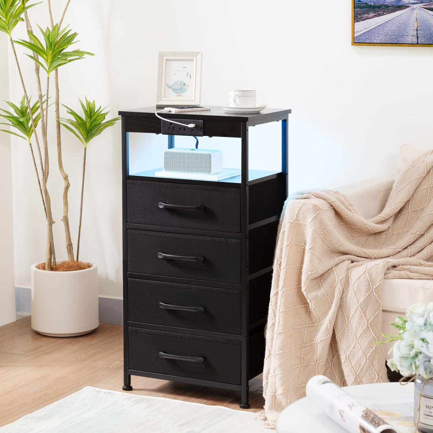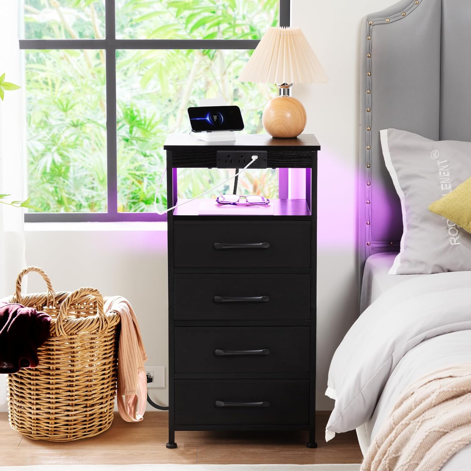 (New Open Box) AMHANCIBLE C Shaped End Table with Charging Station, TV Tray Set of 2 with Storage, Couch Tables That Slide Under, Sofa Table for Living Room, Bedroom BST004BK