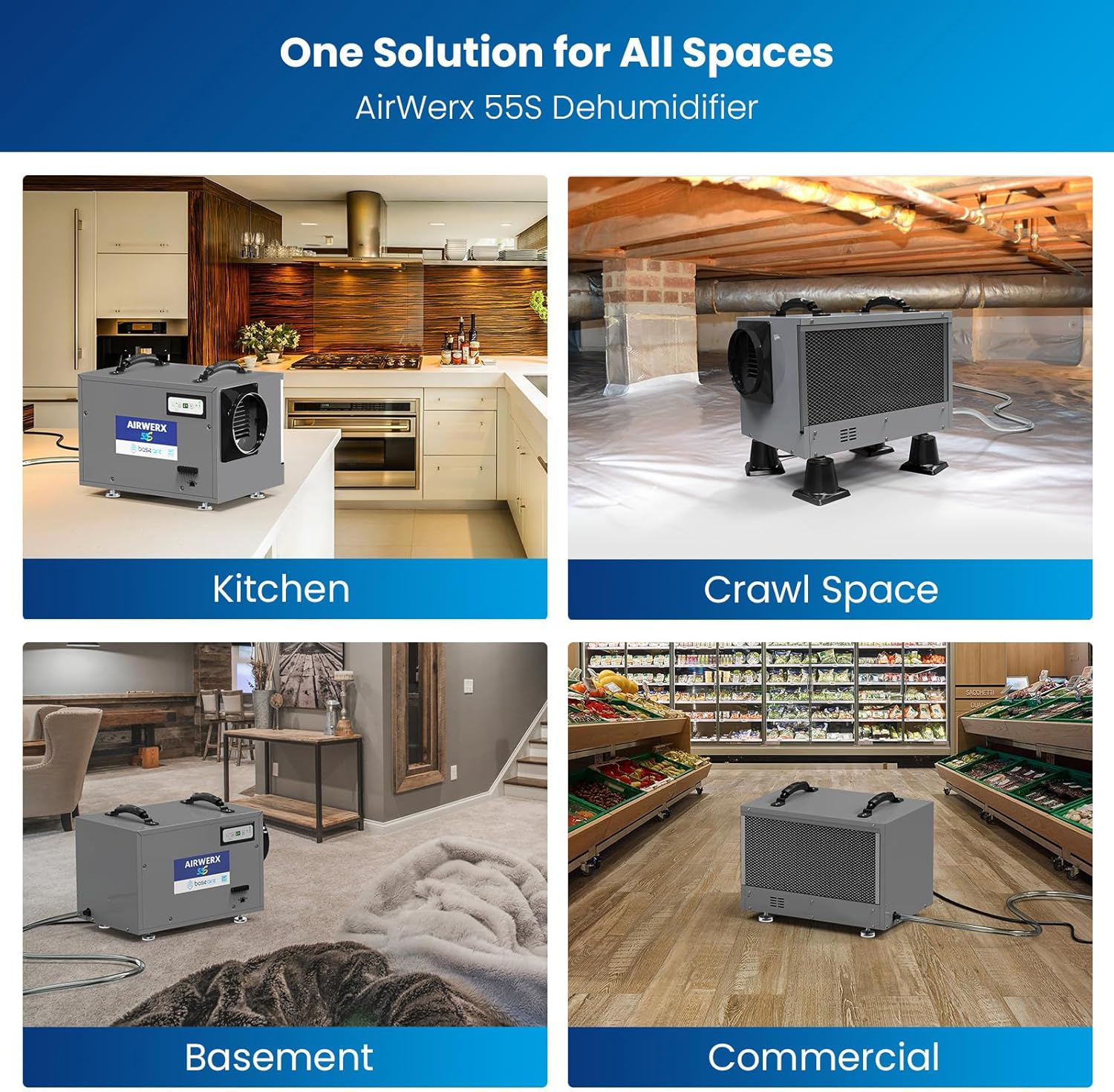(New Open Box) BaseAire Crawlspace/Basement Dehumidifier, 120 Pints Commercial Dehumidifiers with Drain Hose, Intelligent Humidity Control, Auto Defrost,Energy Star, Portable, AirWerx55