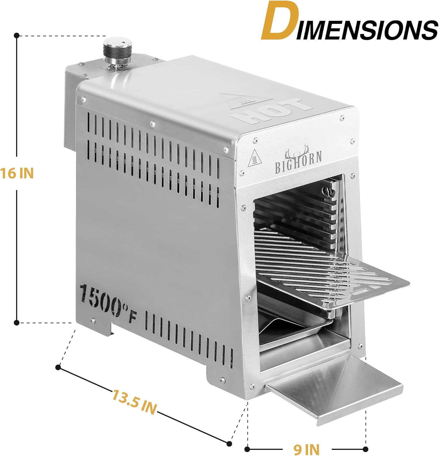 (New Open Box) BIG HORN OUTDOORS Portable Infrared Broiler Propane Gas Grill, 1500 Degree Stainless Steel Tabletop