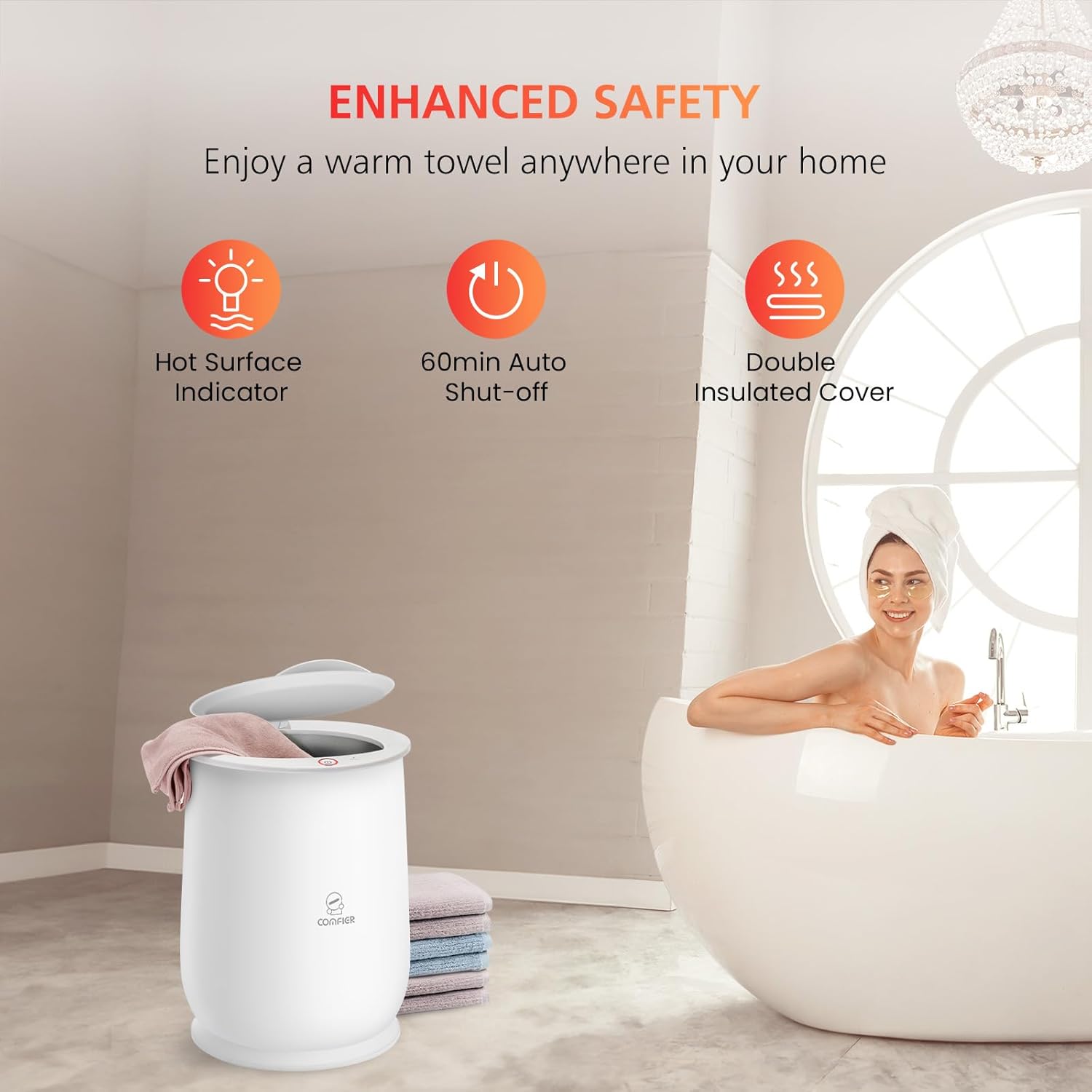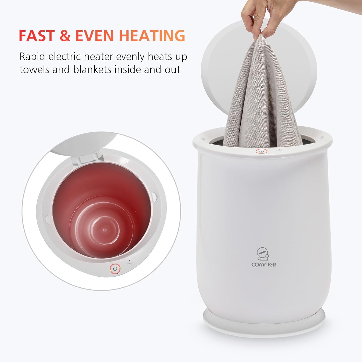 Enjoy spa-like comfort at home with the COMFIER Towel Warmer Bucket. This large-capacity towel warmer heats towels quickly so you can wrap yourself in cozy warmth after every shower or bath. Perfect for bathrooms, spas, and relaxing home routines.