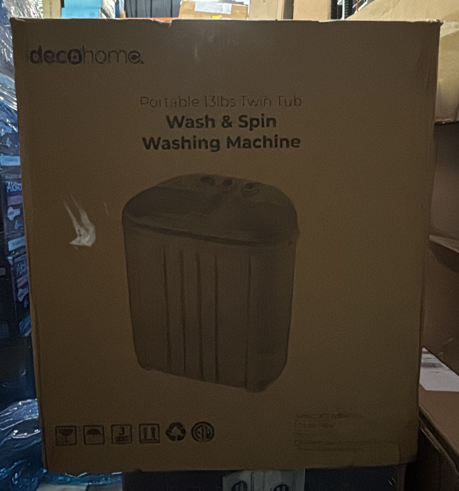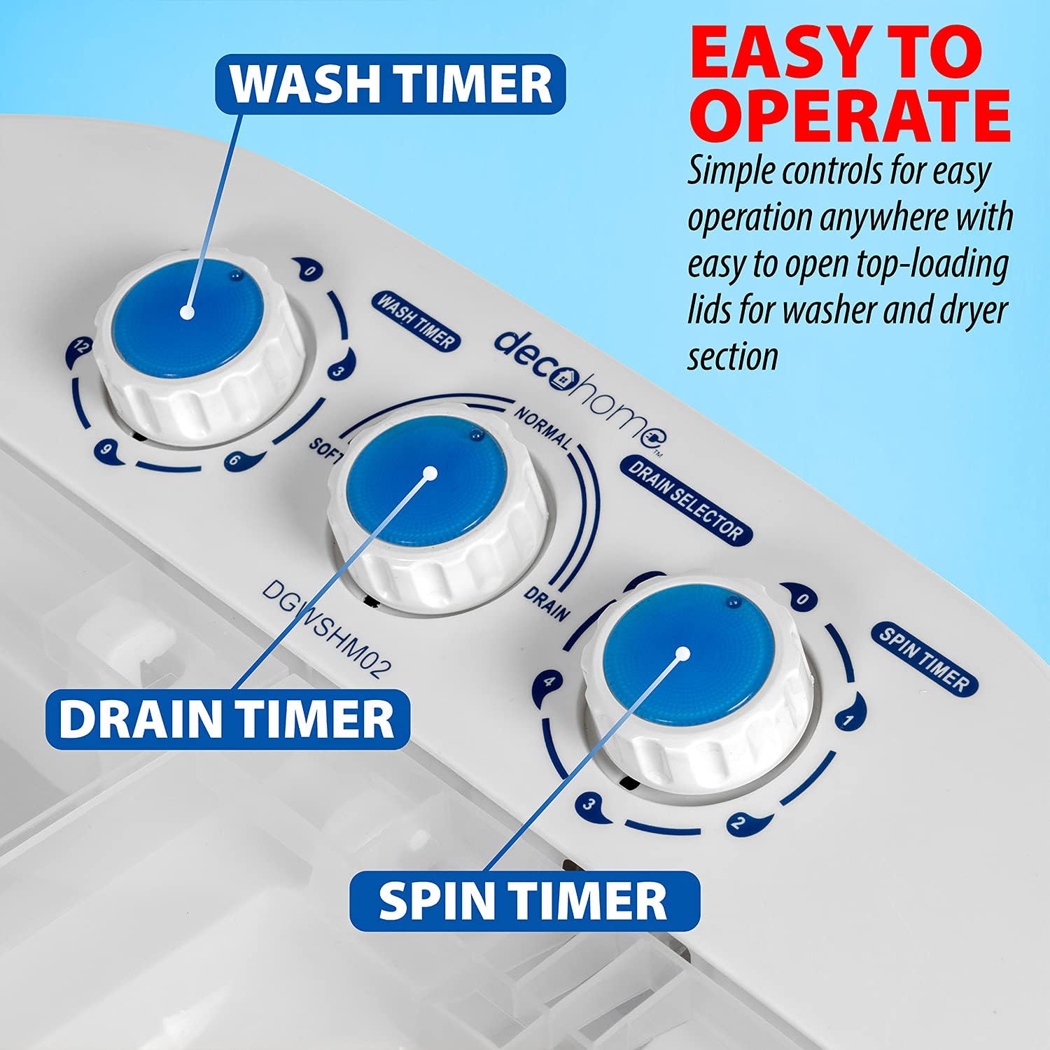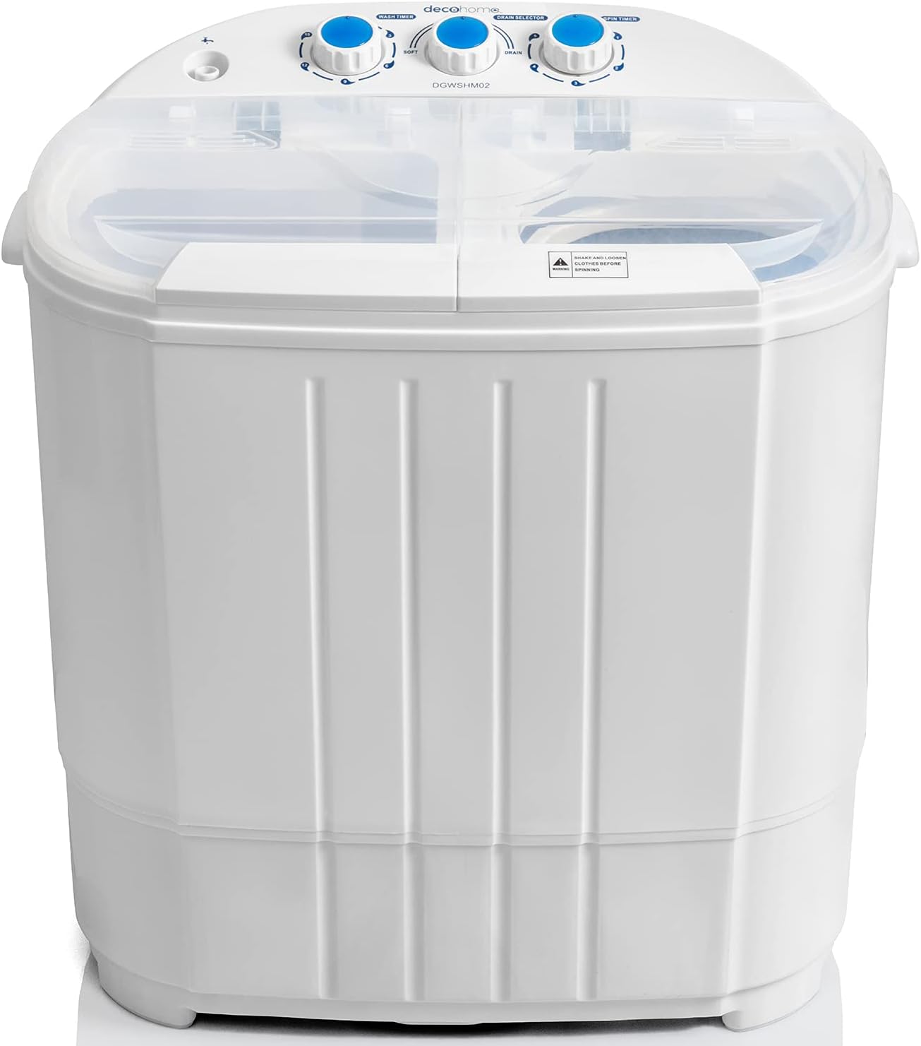 (New Open Box) Deco Home Compact Twin Tub Portable Washer, Top Load, White, 4.5 Pounds Capacity, Water & Detergent Efficient, Ideal for Dorms, Apartments, RVs