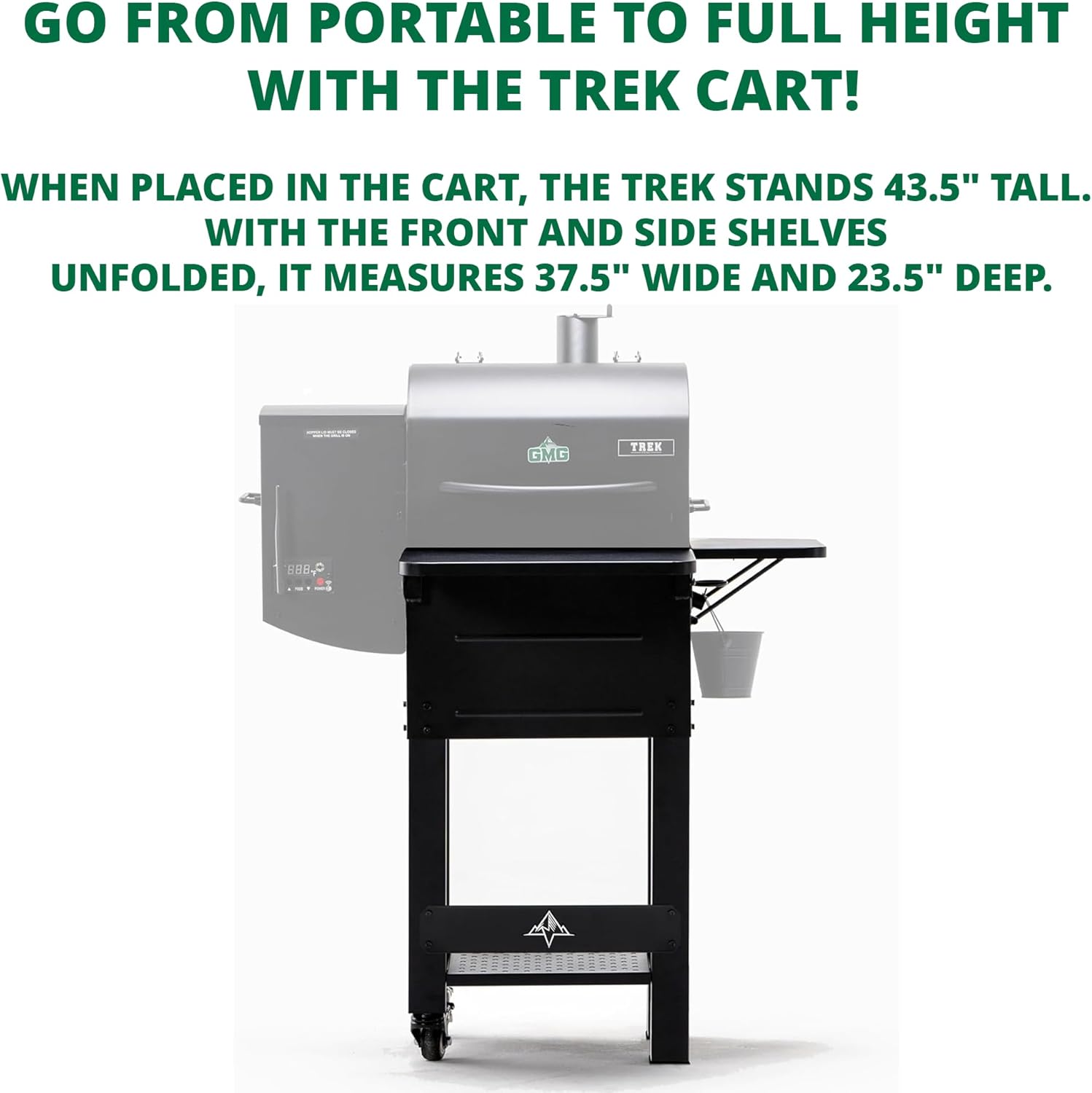 Upgrade your outdoor cooking setup with this Green Mountain Grills (GMG) Stainless Steel Trek Cart Stand, designed specifically for the Trek Portable Pellet Grill.