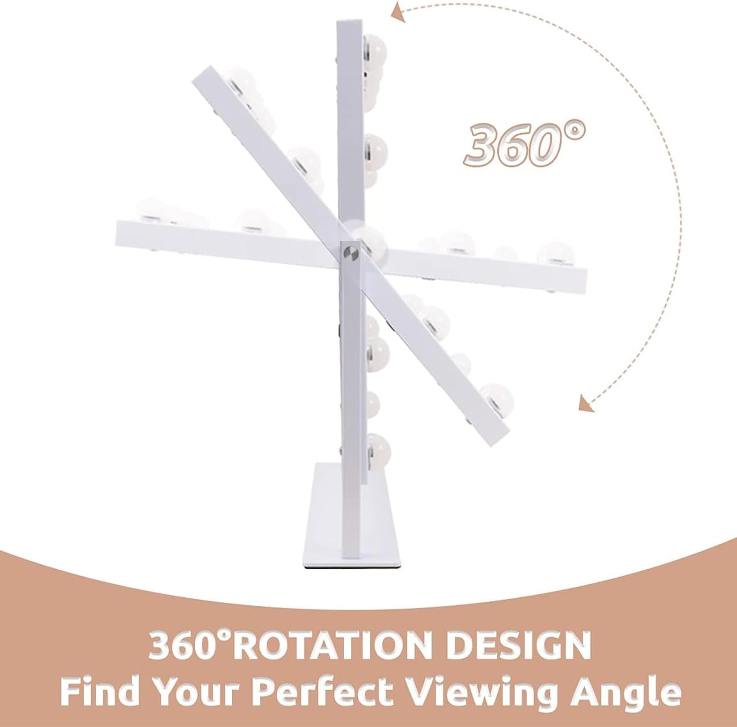 【360 Degree Rotation&Sturdy Metal Base】The lighted vanity mirror can rotate to whatever angle is needed, and it is on a sturdy metal base and feels solid, also with a non-slip mat on the bottom, so it won't tip over.