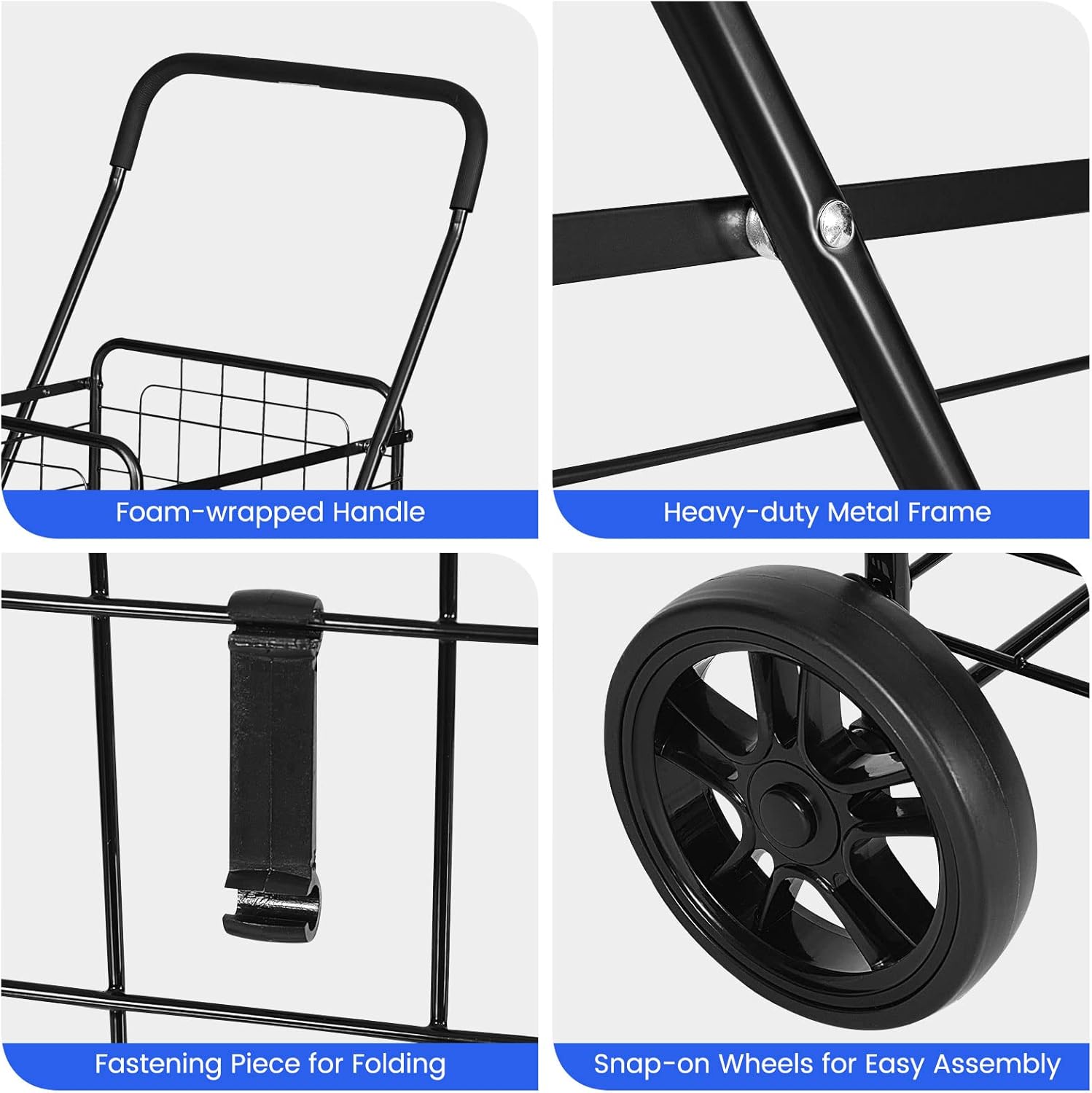 (New Open Box) Heavy-Duty Folding Shopping Cart | 22 Gal Metal Basket • Large Wheels • Utility Rolling Cart