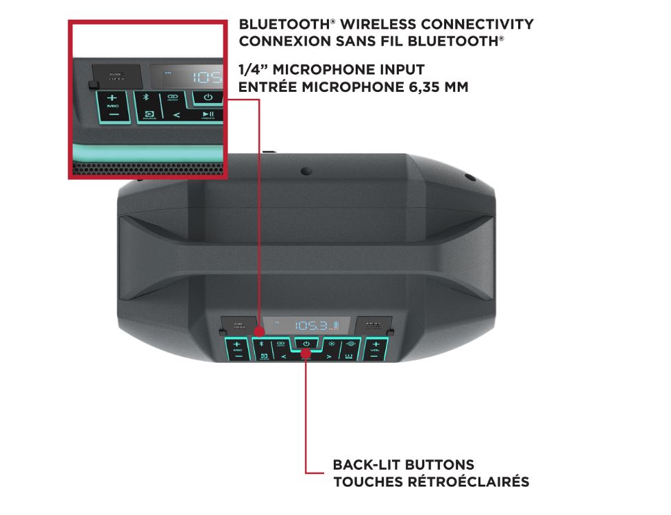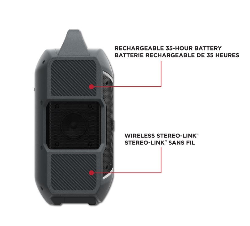 WIRELESS STEREO-LINK ™ Wirelessly connects 1 additional Party Boom Plus for stereo sound