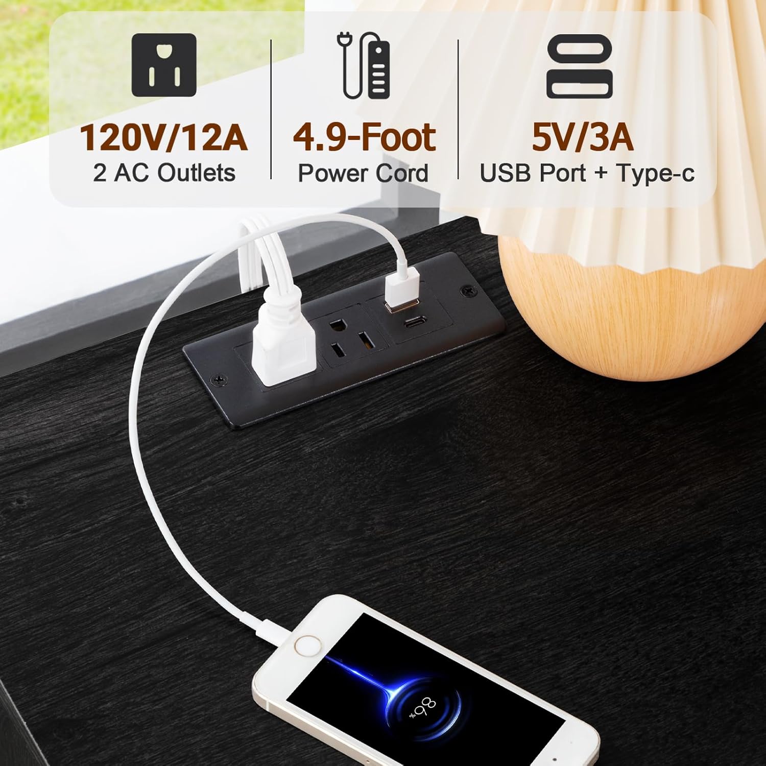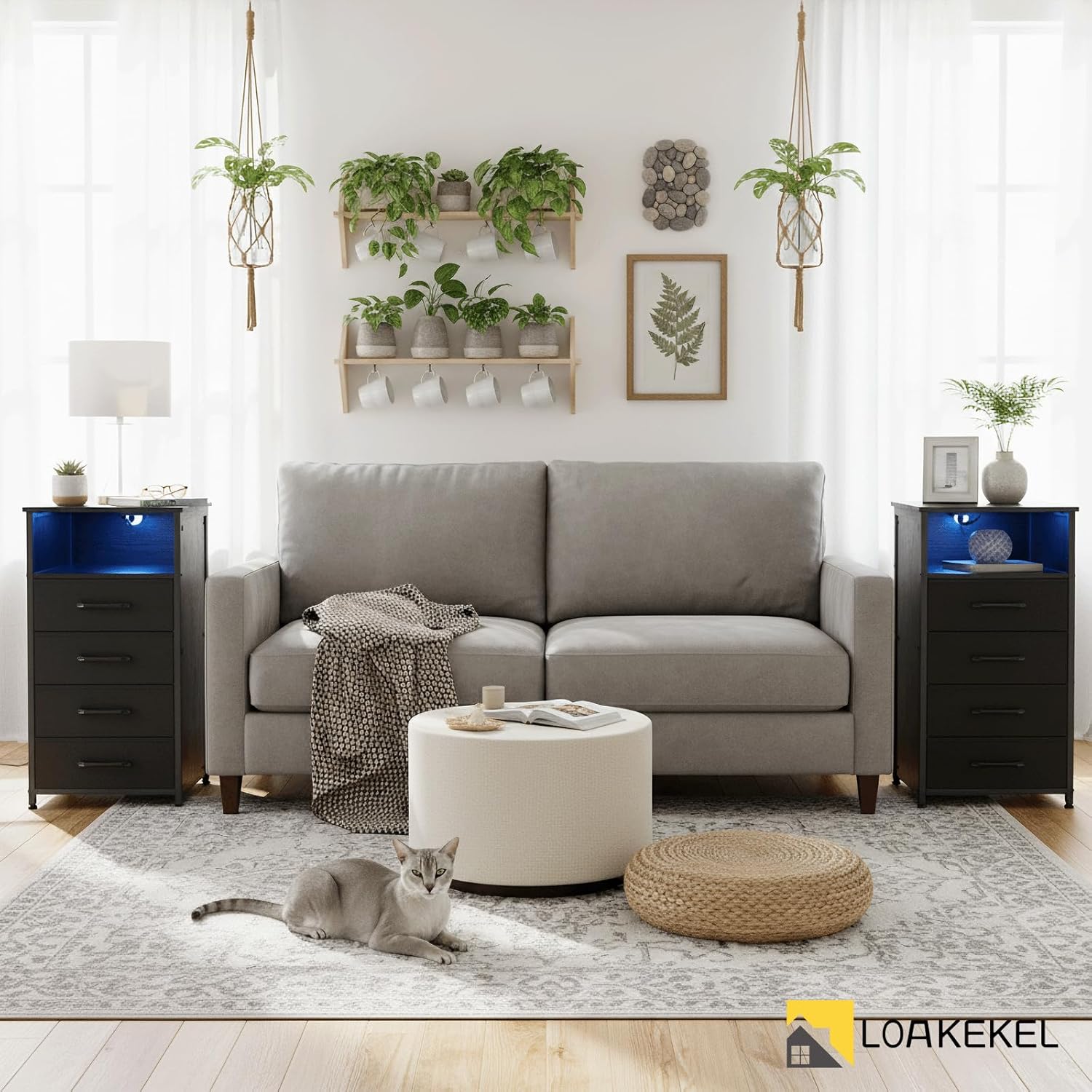Modern and functional nightstands perfect for any bedroom setup. This LOAKEKEL nightstand set includes built-in LED lighting, a charging station, and ample storage—combining style with everyday convenience.