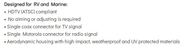 (New Open box) Magnadyne MobileVision RV-Link TV-1B-WFB1B | RV TV/AM/FM Antenna