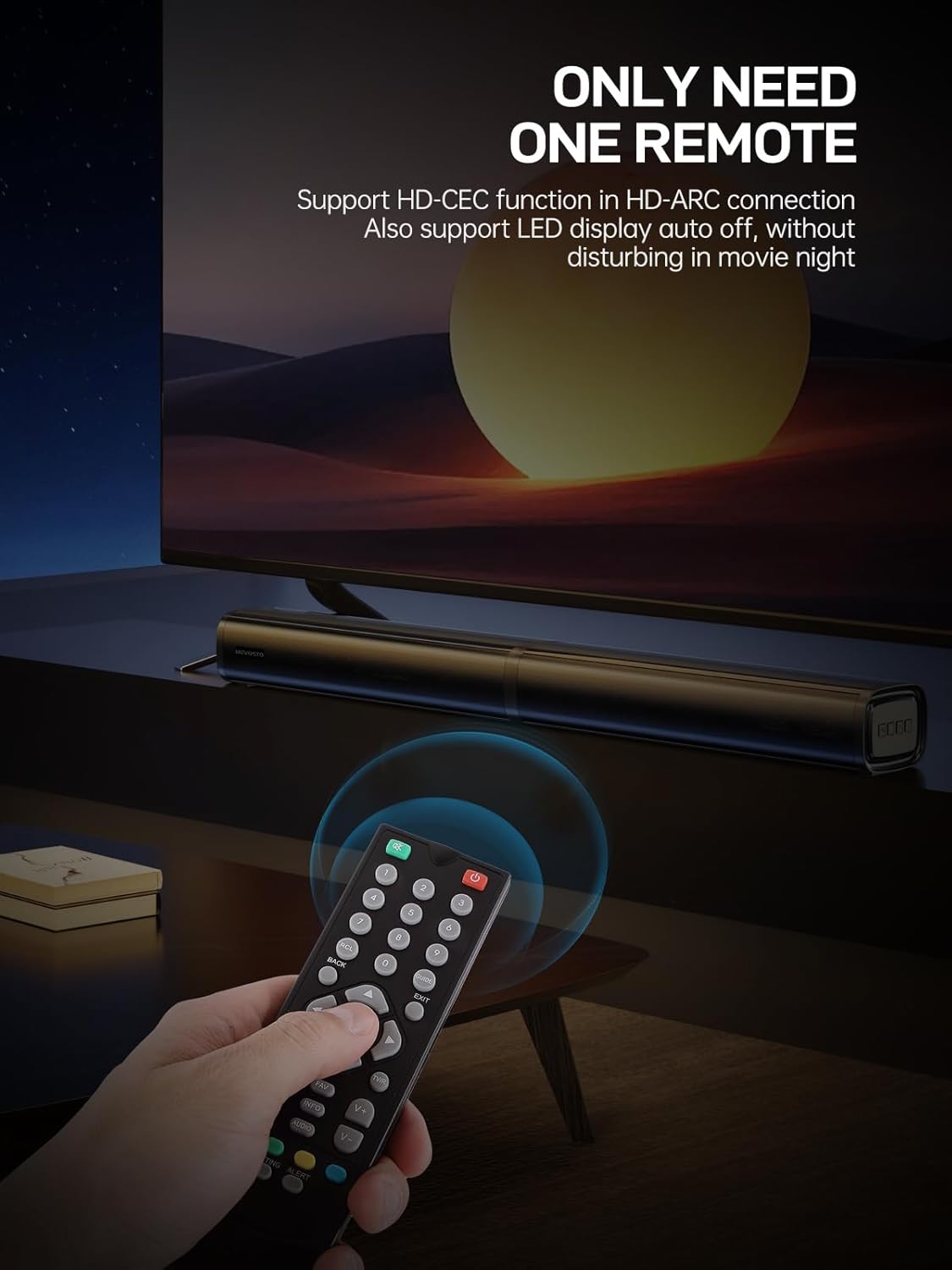 The Mevosto 2.2CH Soundbar (Model D7H) features a 2-in-1 separable design, dual built-in woofers, and rich surround sound with adjustable bass and treble.