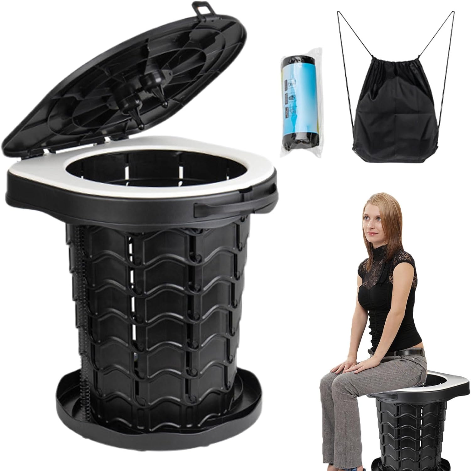 MODERN AND FUNCTIONAL DESIGN: Featuring an innovative fish scale design and adaptable height adjustments, this portable toilet offers quick adjustments to ensure maximum comfort and accessibility in a variety of environments. Its versatility makes it ideal for users of all ages, meeting daily personal hygiene needs without compromising aesthetics or comfort. Portable toilet is a practical solution for travel, camping or occasional home use. Enjoy