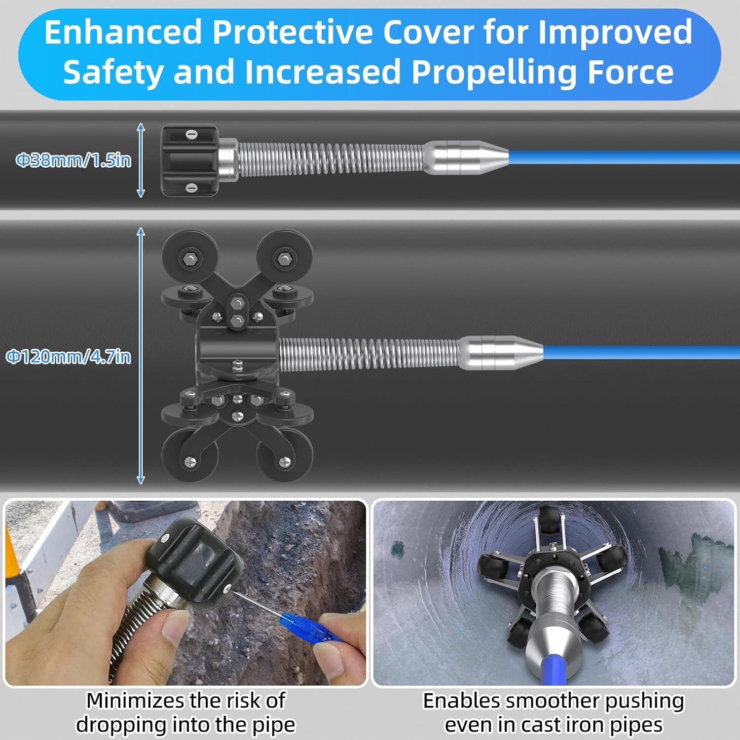 📏 100FT / 30M Cable – ideal for long sewer and drain lines
